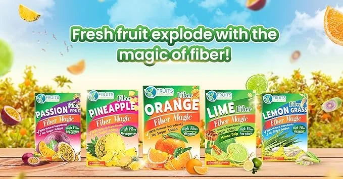 We are exited to introduce you to “Fruits Fiber Magic”, a groundbreaking health and wellness product designed to meet the growing consumer demand for natural sugar-free solutions that support digestive health and overall well-being. Fruits Fiber magic is formulated with 100% natural fruit ingredients rom Thailand. It contains zero sugar, no preservatives, and no artificial color or favors, making it and ideal choice for health-conscious consumers. Fruits Fiber Magic is available in five delicious fruit flavors: Lemongrass, Orange, Pineapple, Lime, and Passion Fruit. Self-evident and beneficial for daily health routines.